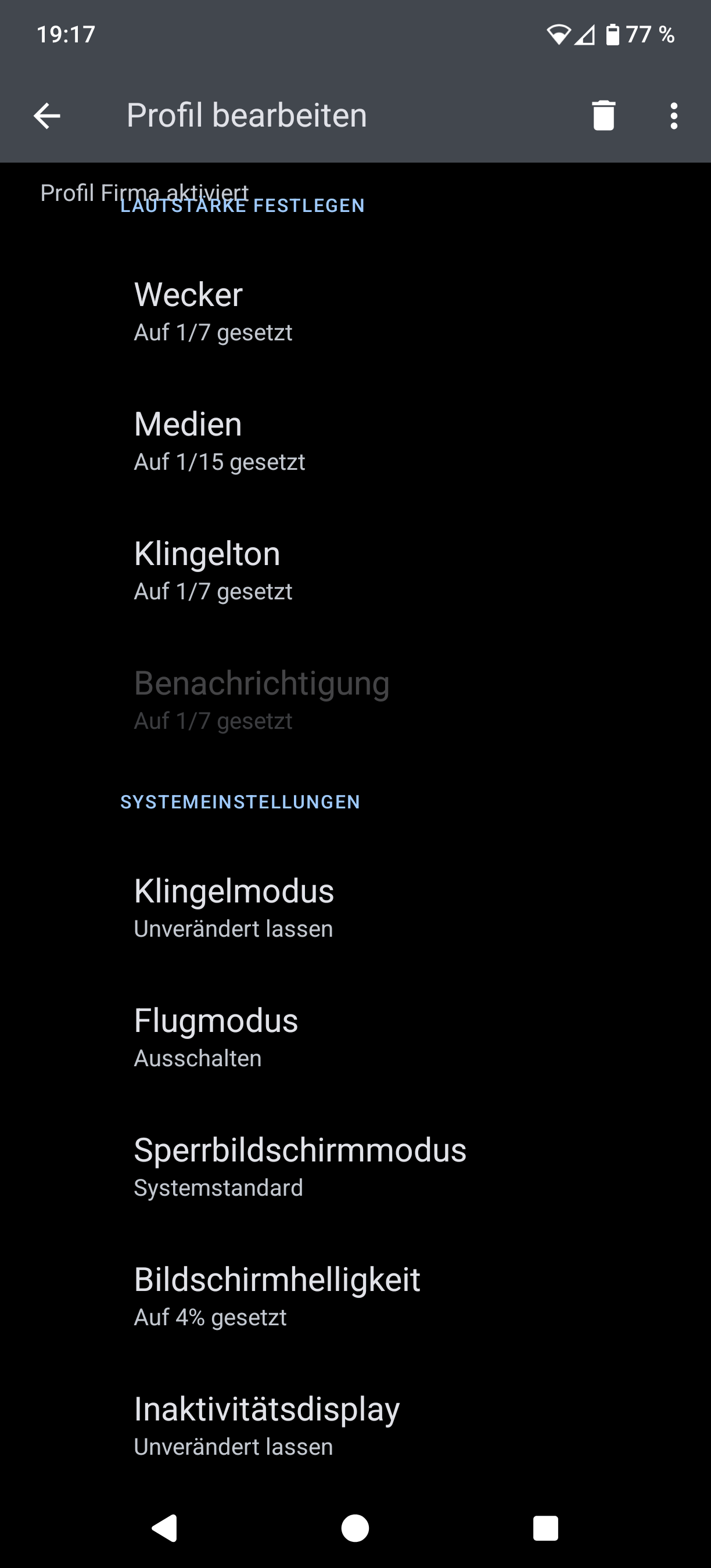 Ich habe eine Fehler in den Systemprofilen gefunden. Stelle ich eine Displayhelligkeit ein und den Schalter überschreiben, z.B. 3 % und aktiviere dann dieses Profil, dann ändert sich die Helligkeit. Aber nicht auf 3% sondern auf 33%.