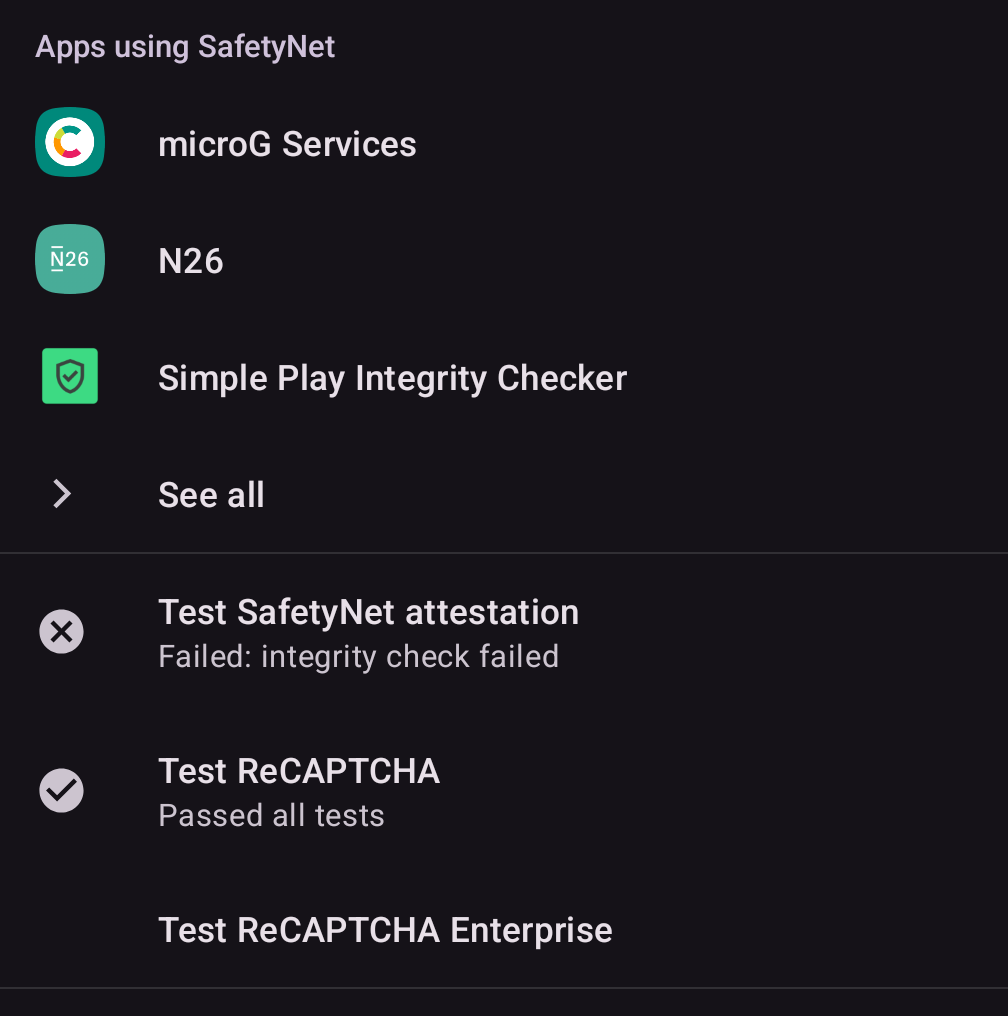 I use WhatsApp in Shelter. For that example, do you have microG device attestation and SafetyNet enabled in microG “work” profile (can access that microG from Shelter settings or from Settings > System > microgG Settings?