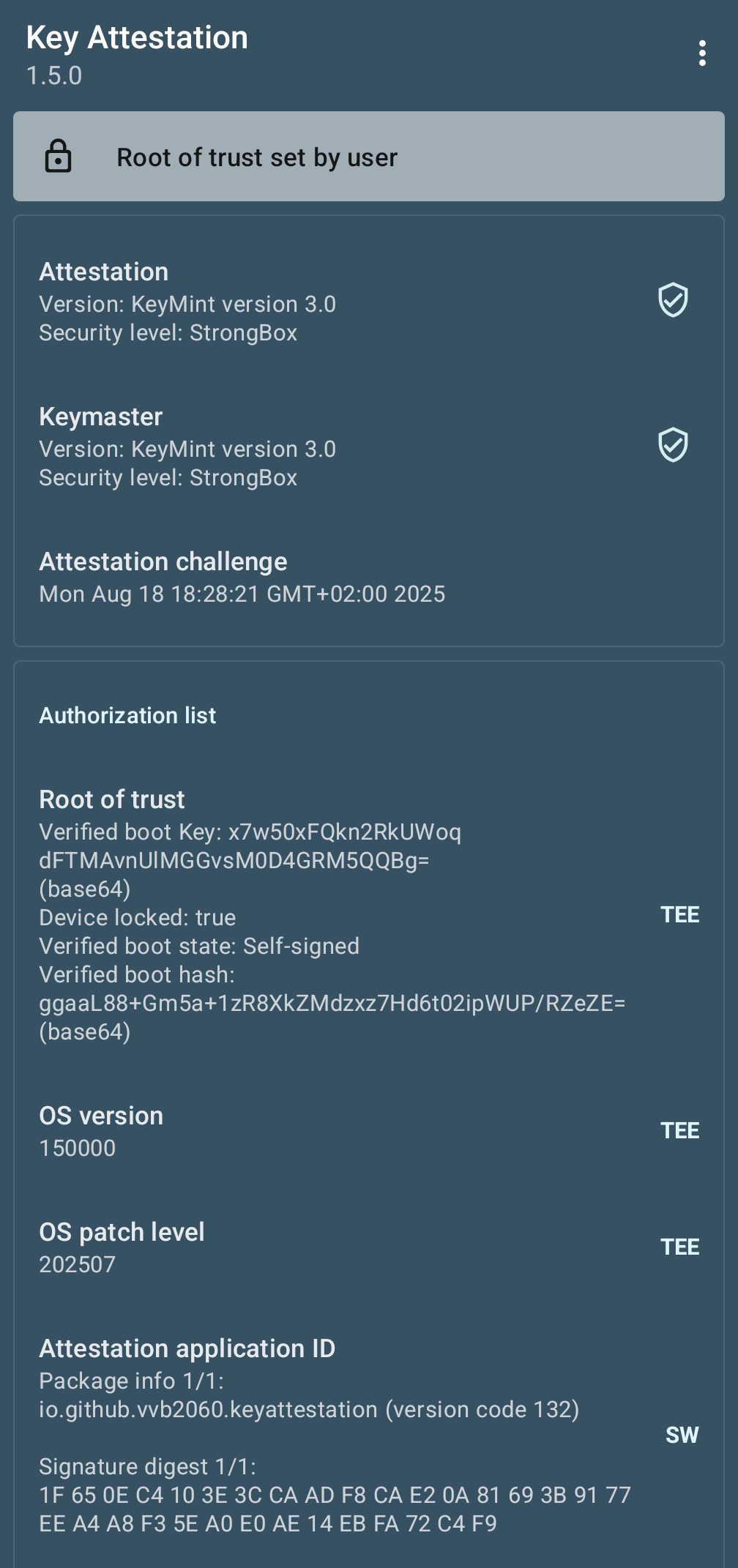 Is this Key Attestation Result supposed to be like that? On my older phone where I’ve installed the LSPosed module to hide the bootloader state it says that the bootloader is locked