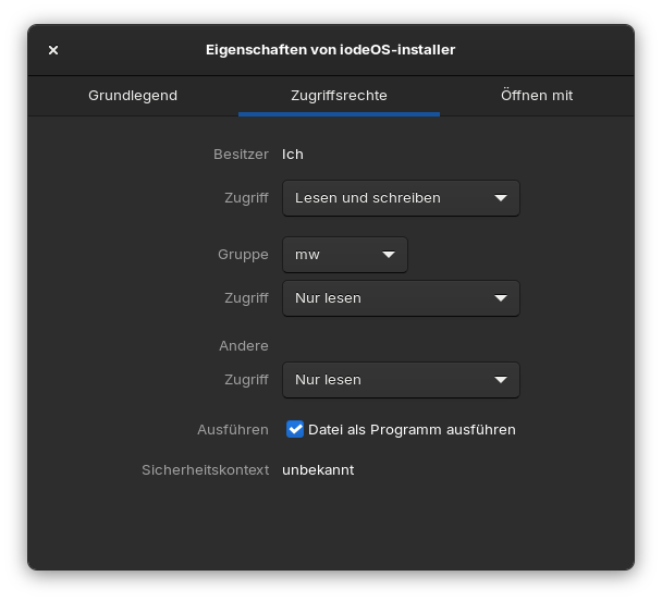 chmod: Hättest du netterweise eine Kurzanleitung dazu? Ich hab nur “iodeOS-installer” vorliegen und 2 Ordner. Rechte Maustaste bietet bei iodeOS-installer “ausführen” an. Doch da passiert nix.