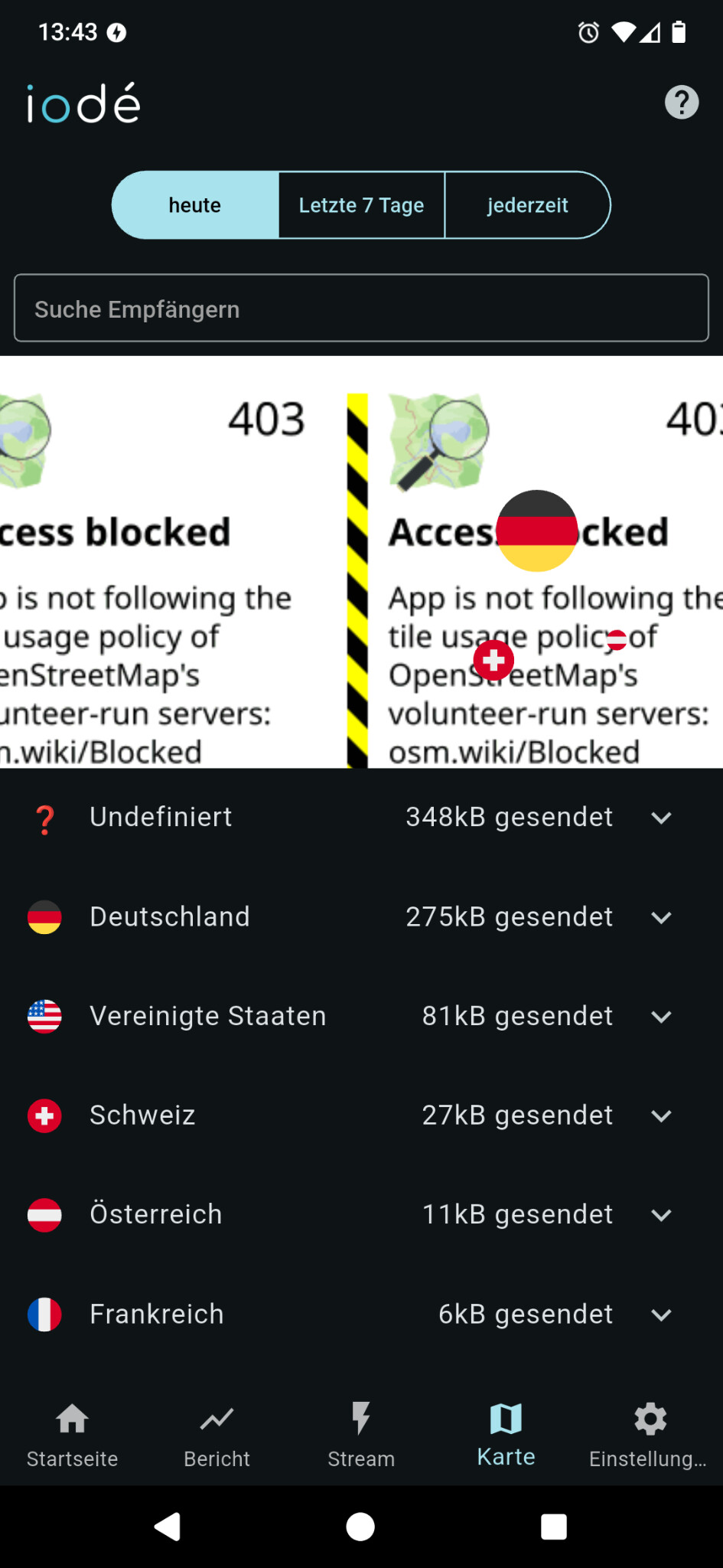 Thanks for the heads up. Issue created: iodé app: OSM Map blocked (#75) · Issues · ota / issue-tracker · GitLab