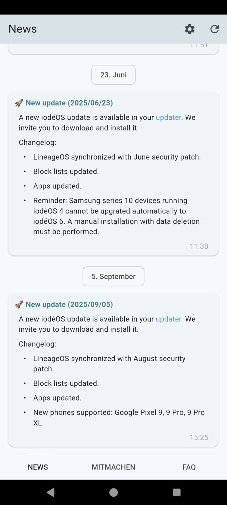 The change of Magic Earth for example was announced in the iode News dated 29.7.25