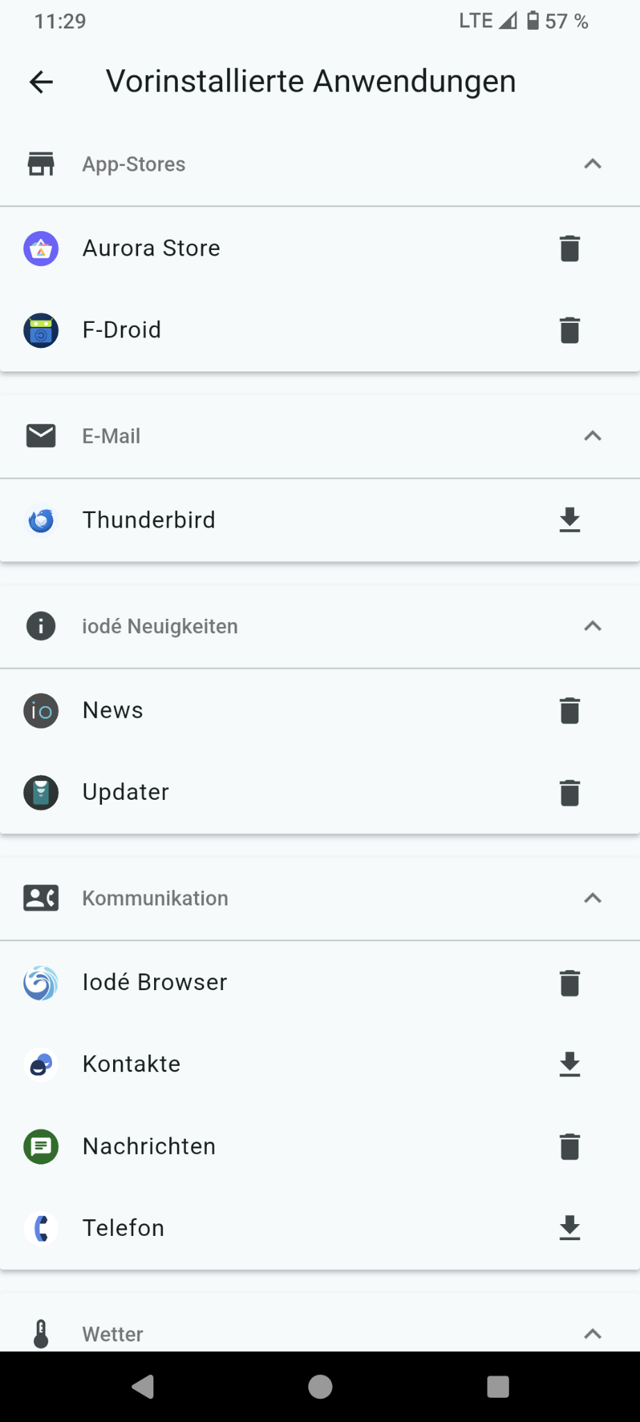 The previously clear list of pre-installed apps has been significantly reduced.