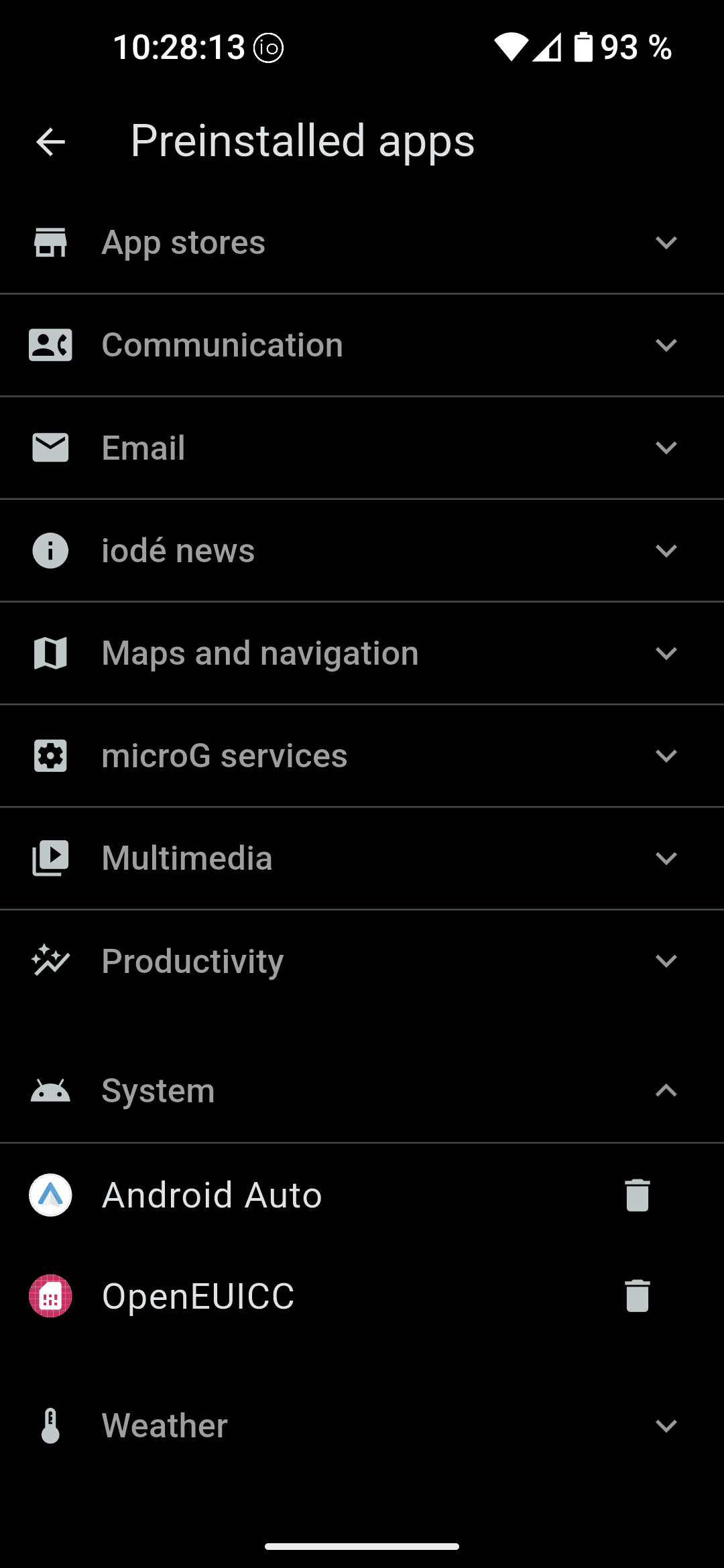 Now my old physical SIM card is recognised again and OpenEUICC is displayed not only in the pre-installed apps, but also in the normal app list. However, it is still not displayed as an icon, so I cannot open it directly and adding new SIM cards does not work yet either.