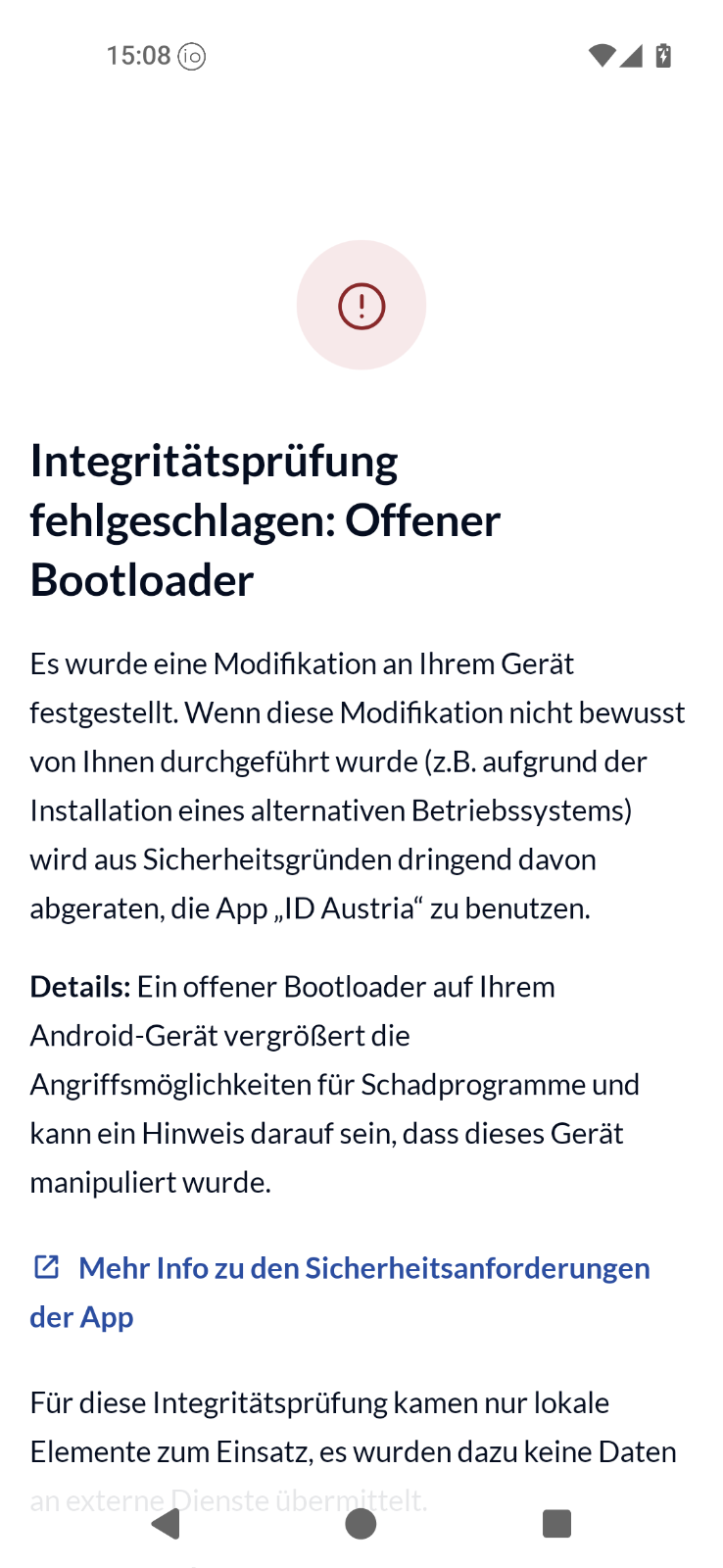 After successfully installing iodé 6.9 and relocking the bootloader on my Pixel 4a, one app continues to state (in German) that I have an “offener bootloader” and won’t let me use it.