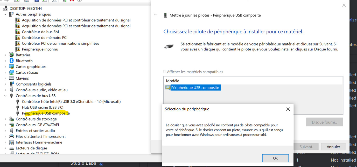 I don’t know if the problem is that I cannot boot in fastboot mode, or if the computers cannot intsall the good driver.