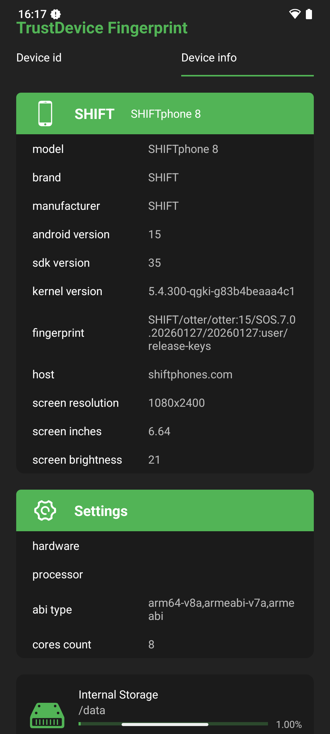 I currently have SOS 20260127 installed and the build fingerprint is SHIFT/otter/otter:15/SOS.7.0.20260127/20260127:user/release-keys, see SHIFTphone 8 - LineageOS für SP8 | SHIFTPHONES . Would be great to get the Lineage base up to date.