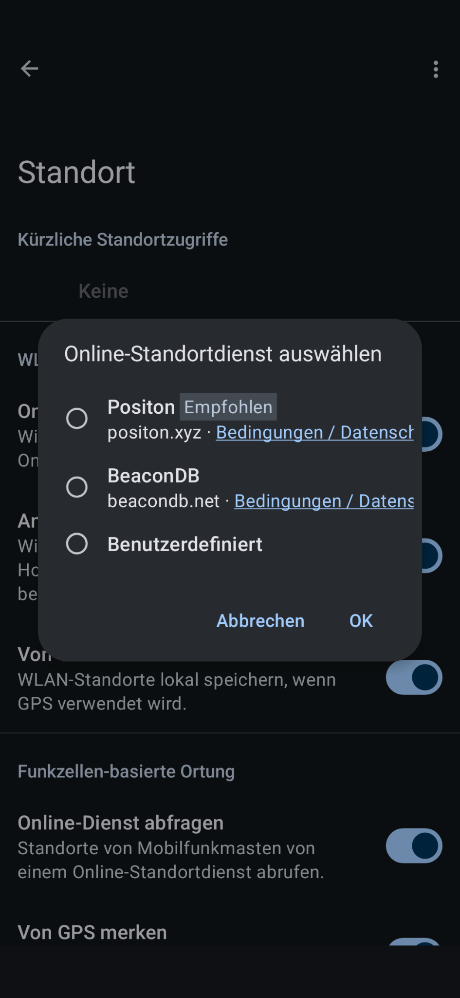 Hab ich auch. Aber wenn ich in microG rein gehe und auf die drei Punkte den “Online Standortdienste auswählen” gehe, ist keiner der drei Optionen aktiv. Ich meine ich hatte “position.xyz” gewählt.